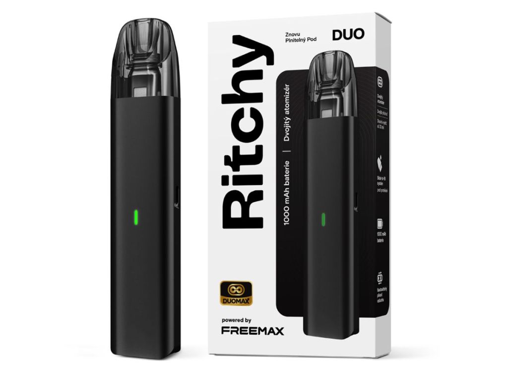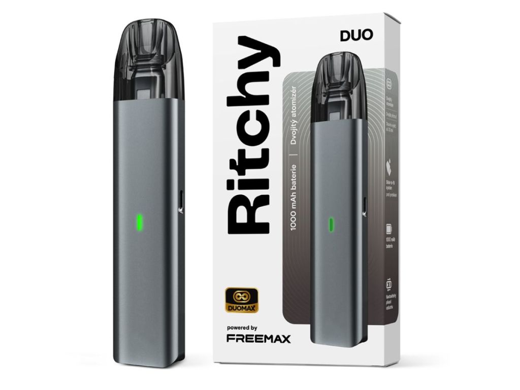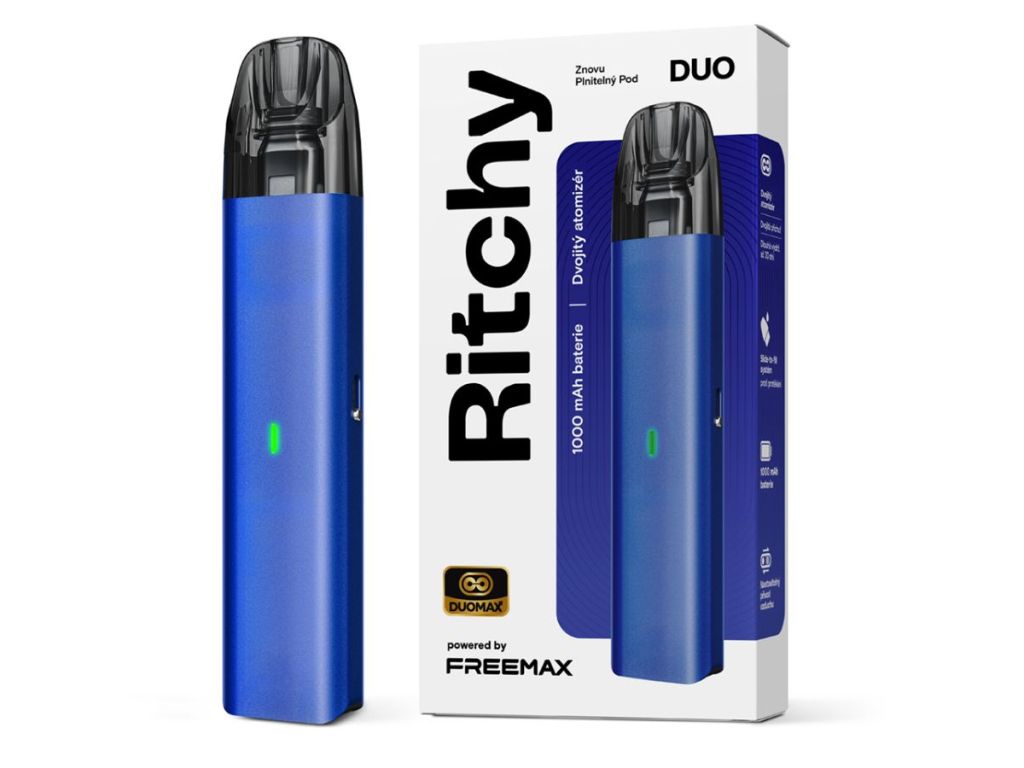 Ritchy DUO Pod je kompaktní a elegantní POD systém, který zaujme nejen svým minimalistickým vzhledem, ale také řadou praktických funkcí pro pohodlné každodenní vapování. Jemné kovové zpracování působí moderně a prémiově, zatímco jednoduché ovládání bez tlačítek ocení začátečníci i zkušení uživatelé. Vapování probíhá pomocí automatického potahu, takže stačí jednoduše potáhnout a zařízení se samo aktivuje.